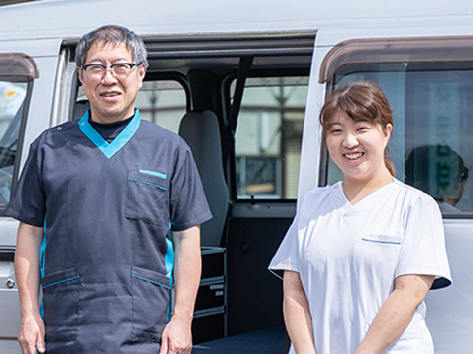 当院では、通院が困難な高齢者や障害のある方のもとへ伺い、訪問歯科診療を行っています。口腔ケアや口腔機能管理、摂食嚥下リハビリテーションなどを通して、「口から食べる力」の維持・向上を目指した支援をご提供します。ケアマネージャーの皆さんと連携し、ご本人やご家族の想いに寄り添った支援を大切にできればと考えております。まずはお気軽にお問い合わせください。