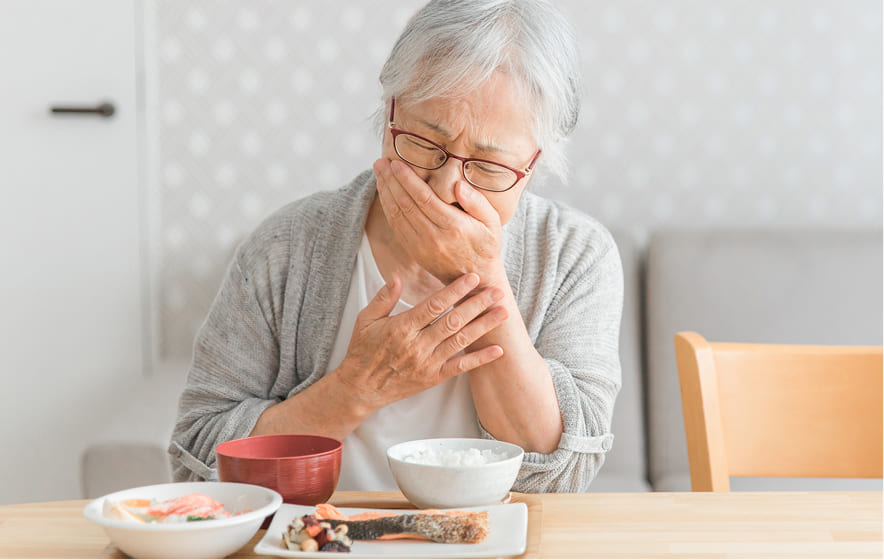 嚥下機能の低下は、食べこぼしやむせ、口の乾きなど、ささいな変化から始まります。早期に気づき、検査と適切な対策を行うことで、機能の回復や誤嚥性肺炎の予防が期待できます。当院では嚥下機能検査を実施し、状態に応じた診断と支援を行っています。気になる症状がありましたら、まずは一度ご相談ください。