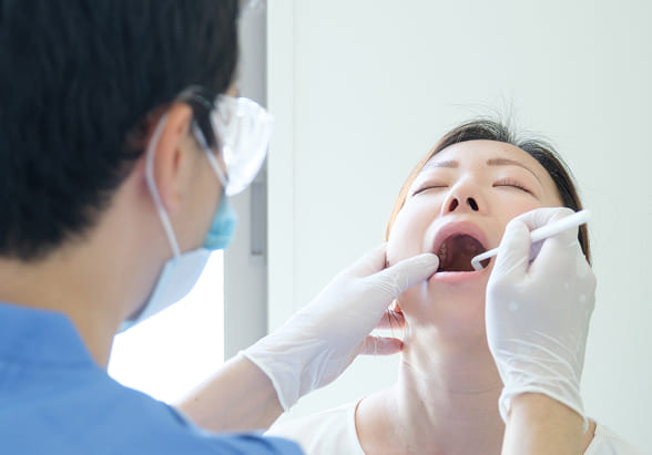 お口のケアが十分でないと、食べ物や唾液が気管に入り、誤嚥性肺炎を起こすことがあります。また、むし歯や歯周病などの問題を引き起こし、痛みや食事量低下などを招く可能性も考えられます。訪問歯科をご利用いただくと、歯の治療だけでなく、お口の中の清掃や飲み込みの検査なども受けられます。歯科医師や歯科衛生士のサポートを受けることは、介護する方の負担軽減にもつながります。患者さんの生活の質を保つために、まずはお気軽にご相談ください。